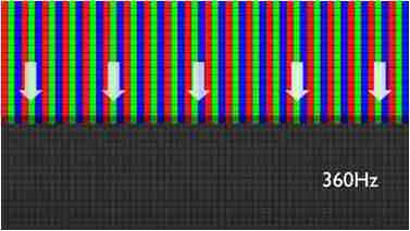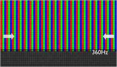 传统液晶驱动是从左到右单向进行,,,在画面更新速度愈来越愈快的情况下,,,位于驱动线路末端的右下角区域,,,画素的闸极来不及在短时间内获得足够电压,,,无法显示出正确的颜色资讯。。。。