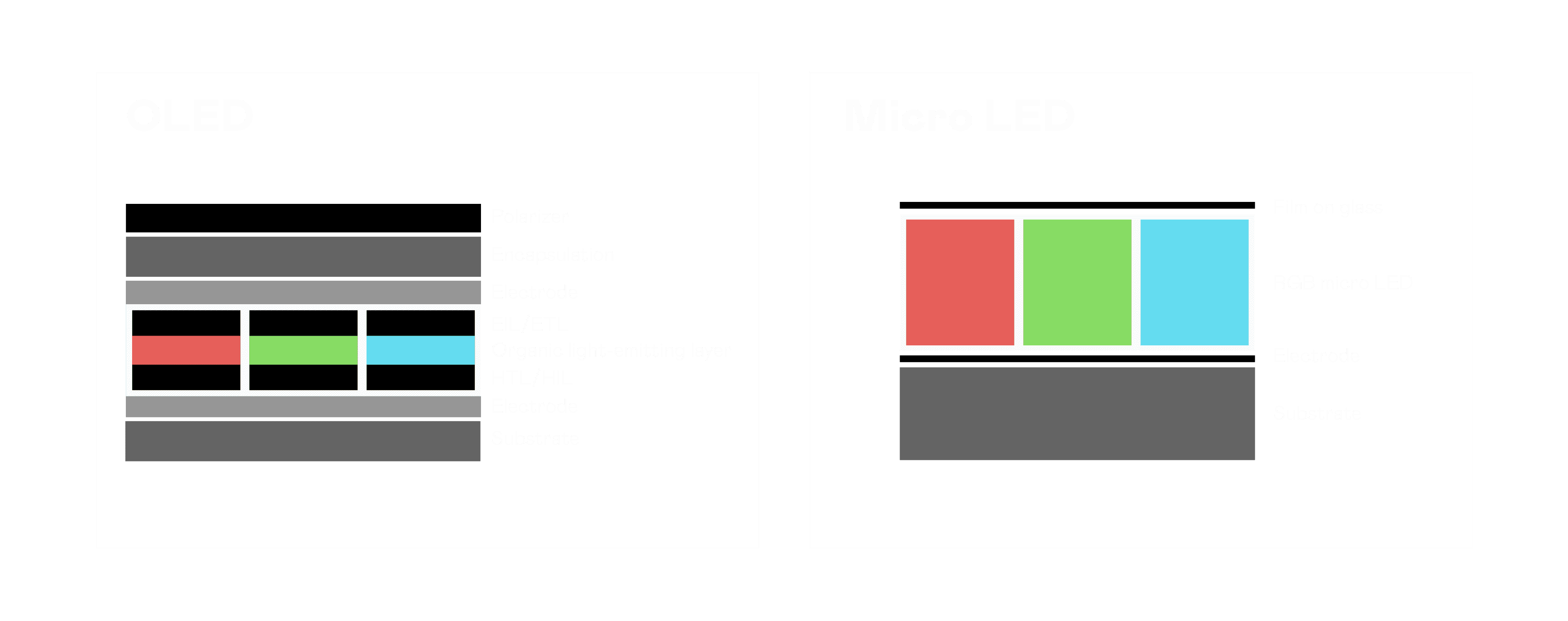 以 LED 做为显示画素,,,可让 LED 的发光效率发挥到极致,,,从而让显示器具备优异的亮度表现,,,不论是在户外或室内,,均具备出众的显示效果。。。同时,,与使用有机材料的 OLED 相比,,,LED 具备更稳定、、、寿命更长的特性,,不仅不会有画面烙印问题,,而且更不容易出现故障、、、、坏点。。
