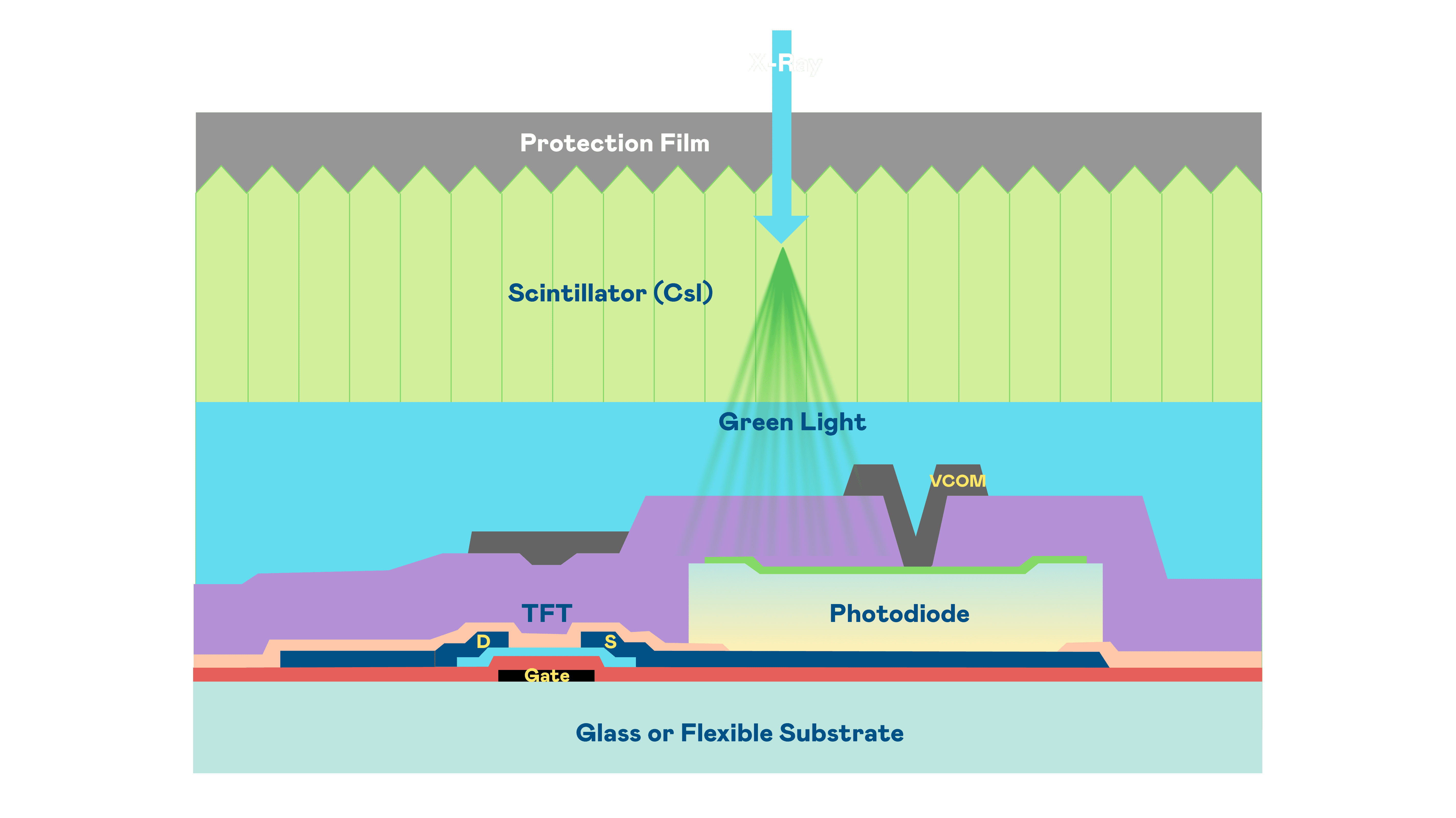 888.BY集团电子游戏的X光影像感测阵列使用薄膜电晶体 (TFT) 作为每个像素的读取开关,,搭配光电二极体(Photodiode)的光电转换元件,,,,用以感测X光影像讯号。。。。